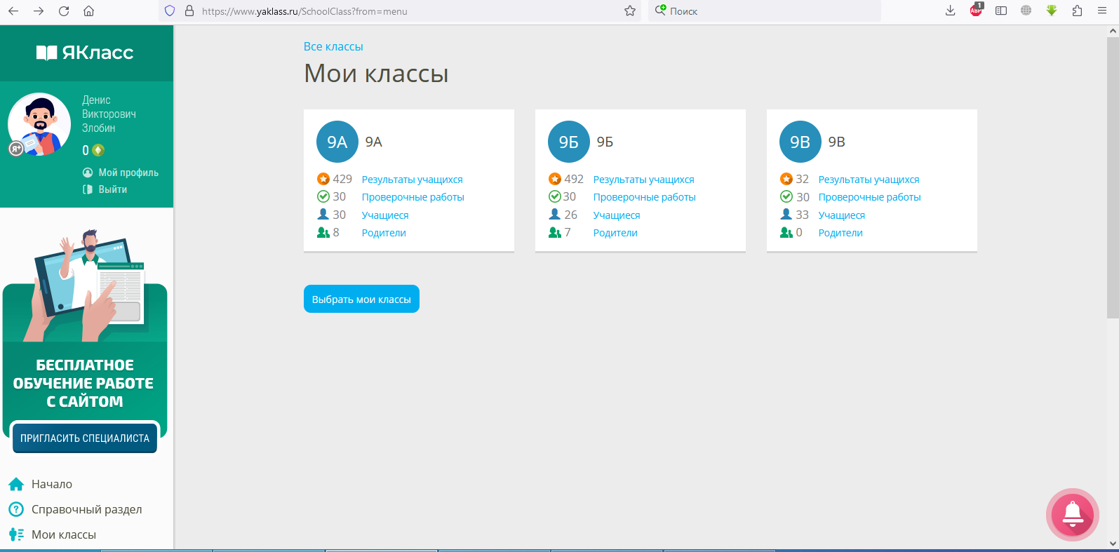 Школлеги. Личный кабинет.